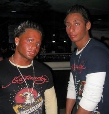 So today I had the pleasure of sauntering my ass thru the clusterfuck that is the Wrentham Outlets, a mere week before Christmas in the high 30 degree weather when I saw a truly confounding, frightening sight – the Ed Hardy store. Never have I imagined such uncontrollable fuckery and throngs of misguided style heathens in one spot outside of the Jersey Shore itself.