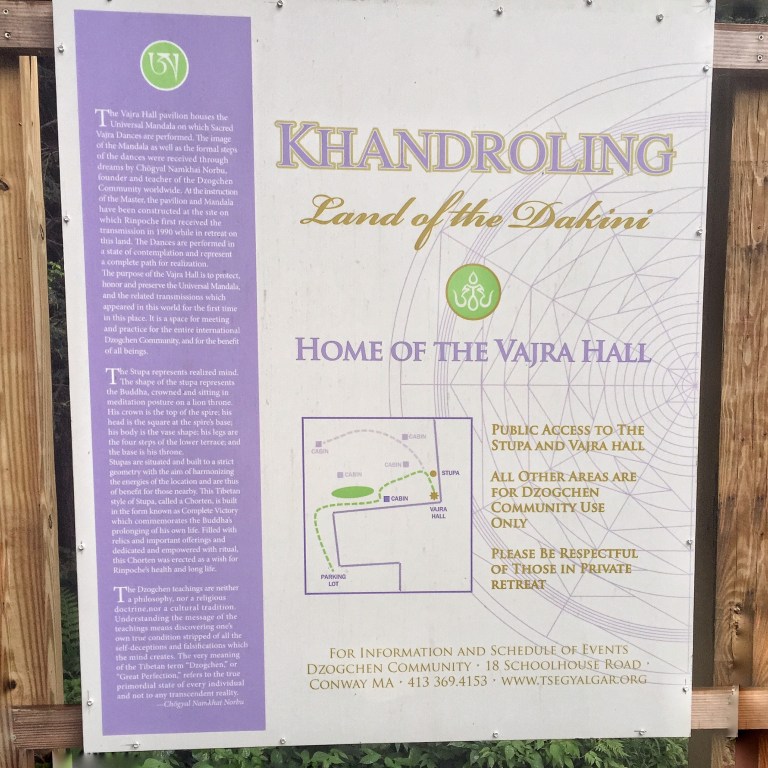 You will eventually end up in Khandroling – a Tibetan Buddhist retreat, about a mile and a half into the Buckland Woods – a mostly secretive reservation with small houses, no running water, a hugely colorful pavilion, and practitioners taking in the quiet and natural aura of this off the beaten path area. It’s…something else.